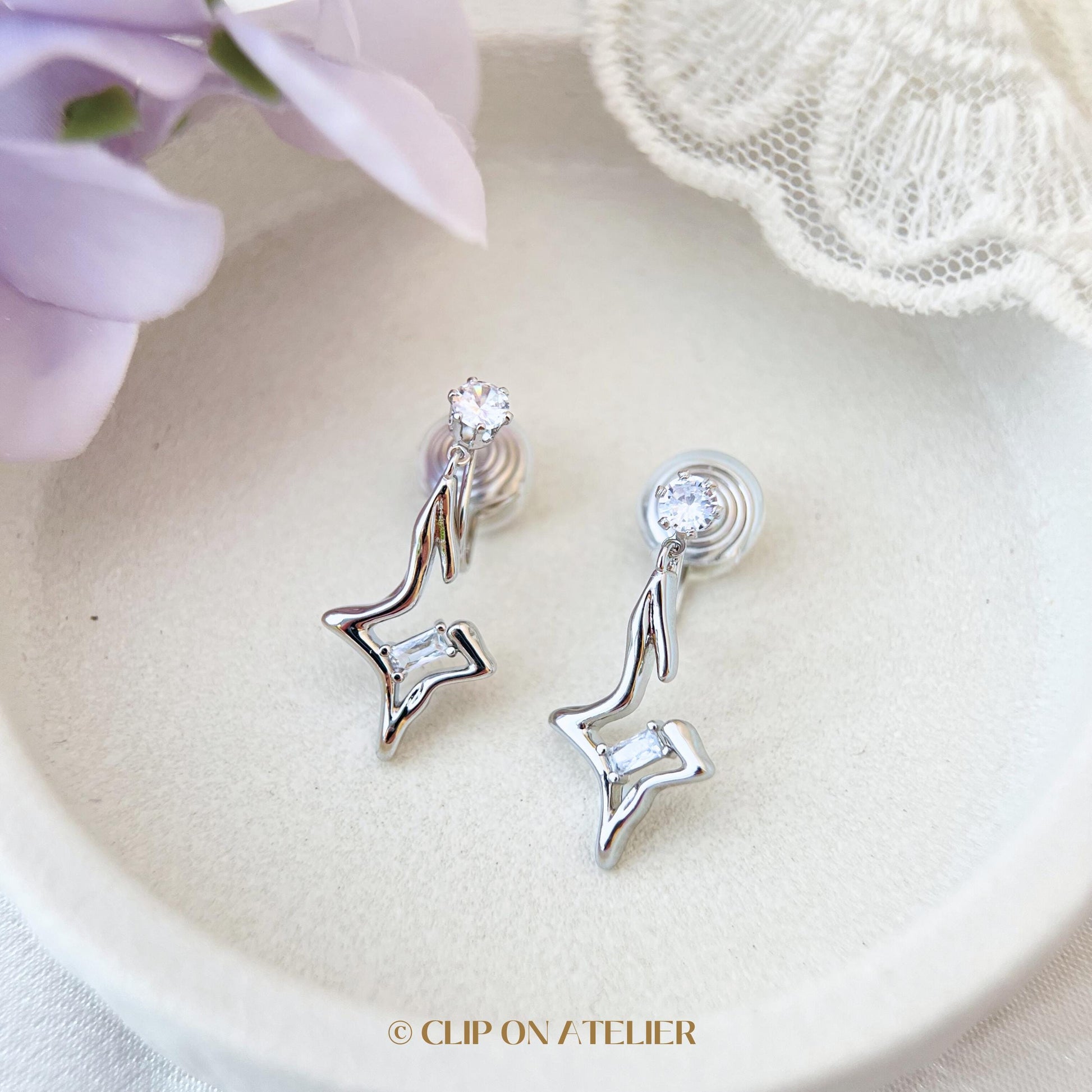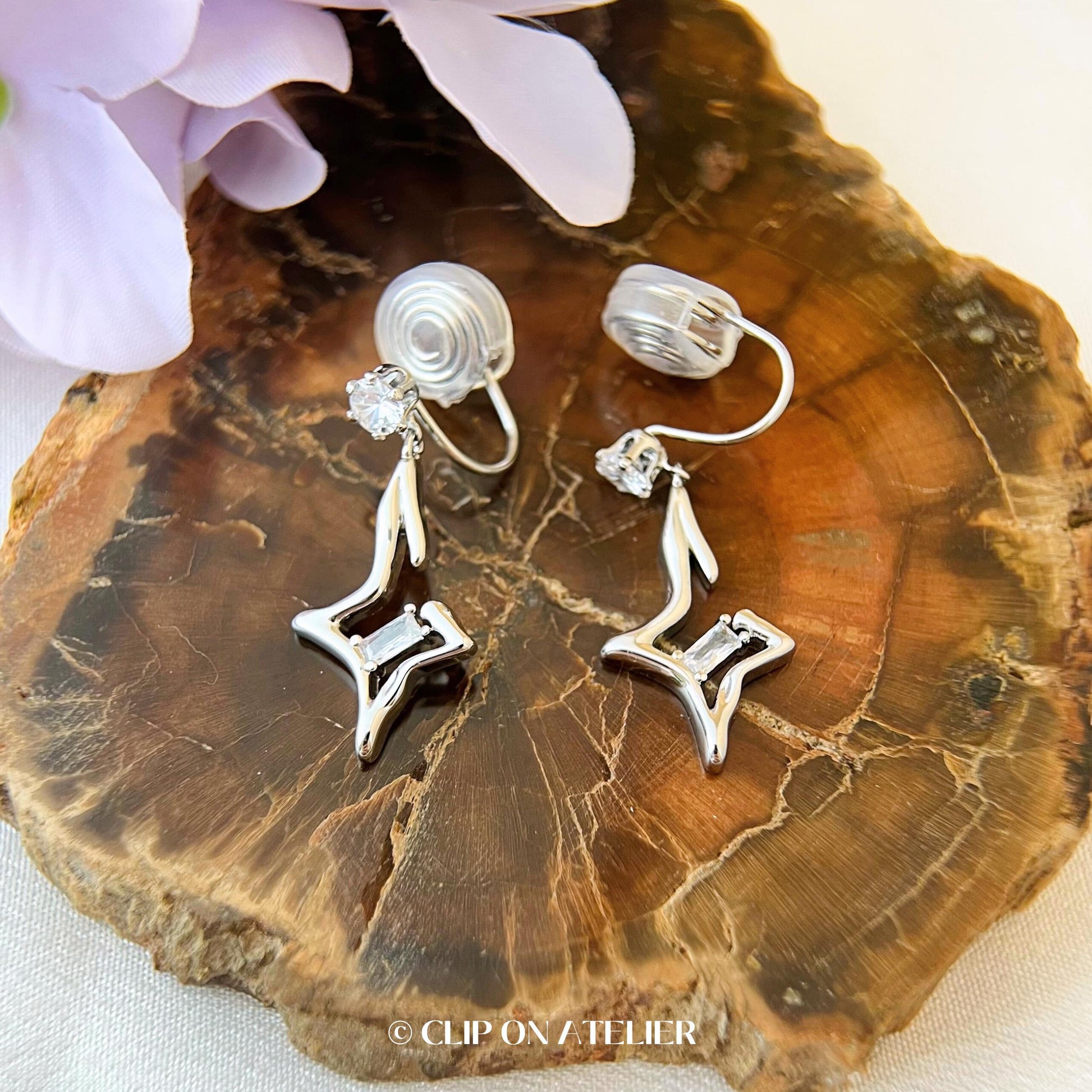 Clip On Earrings Star Minimalist Silver Diamond Stars Dainty Ear Clips | Pain Free Clip Coil Design | Non Pierced Ears | Starry Jewelry Gift