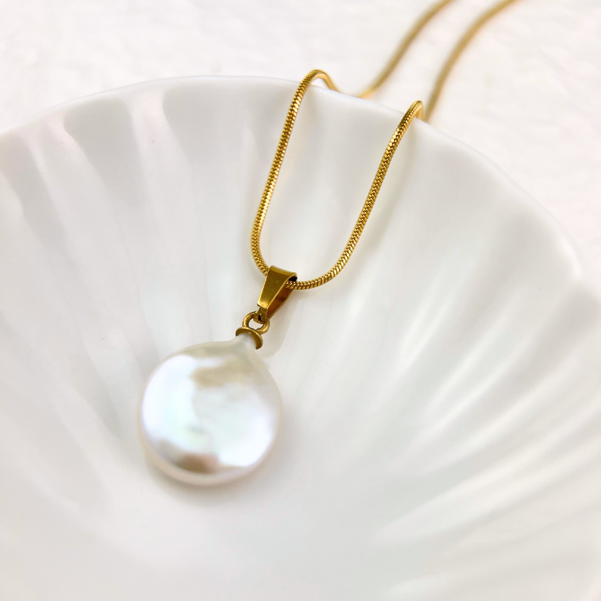 ♥ Material: 14k gold plated stainless steel; Natural baroque freshwater pearl