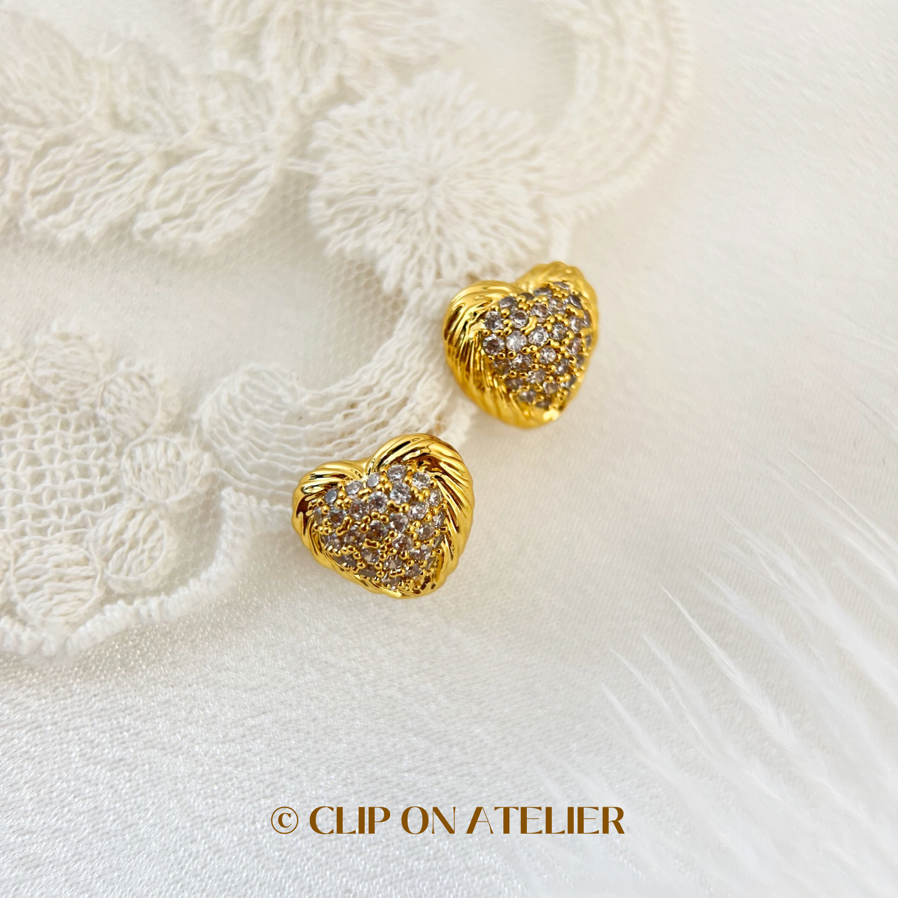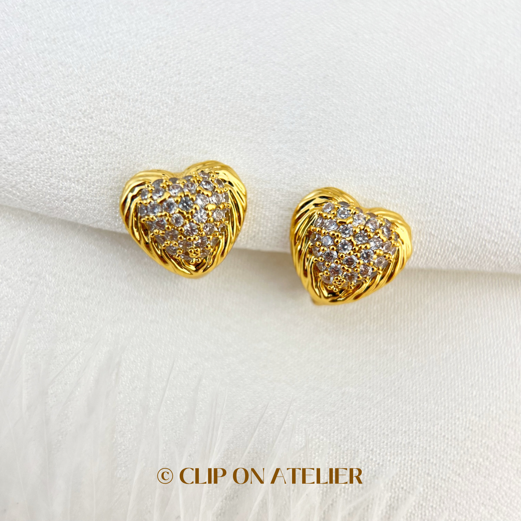 Gold Diamond Pavé Heart Clip On Earrings