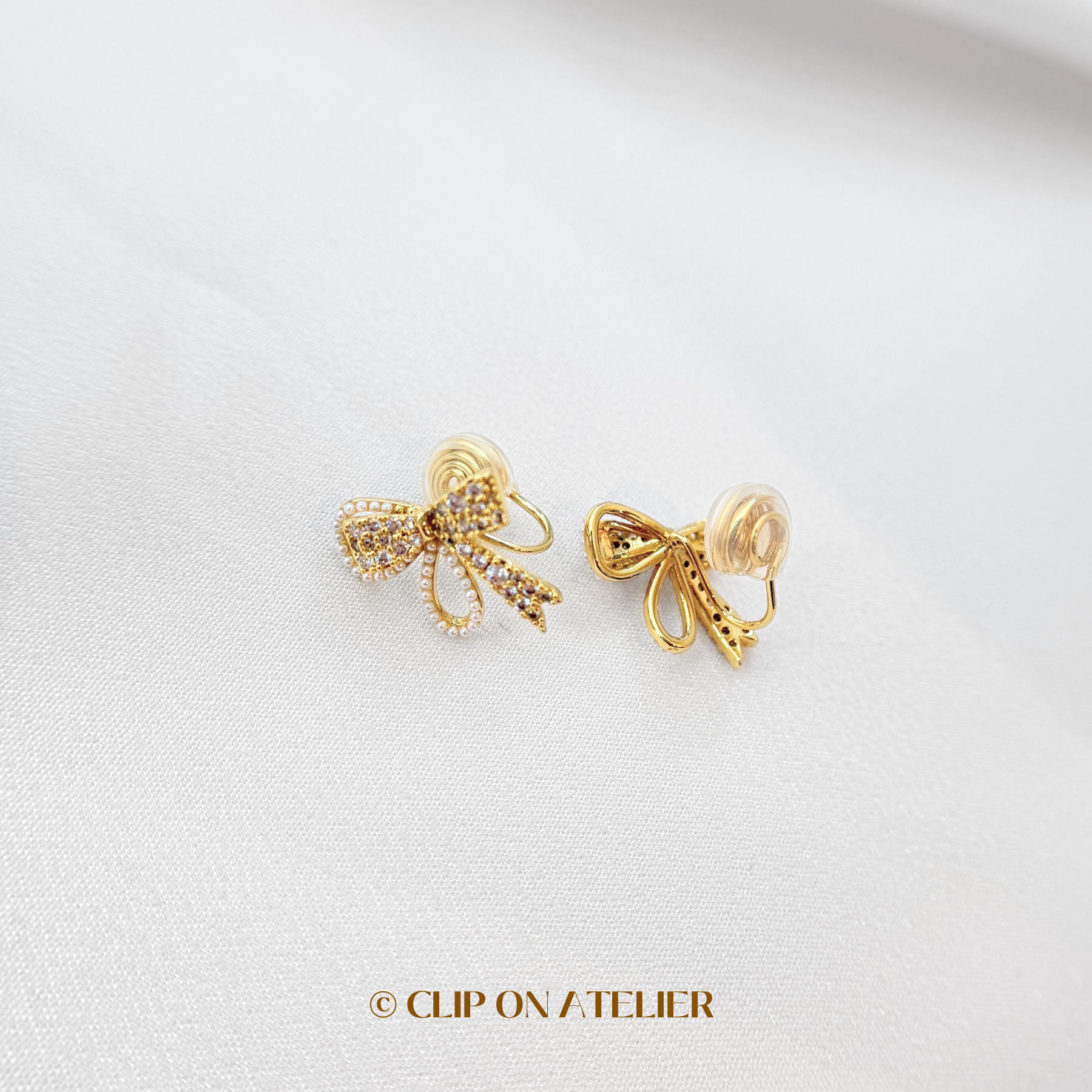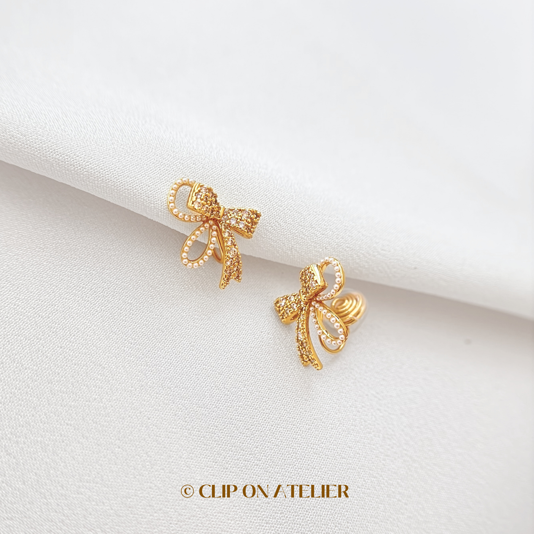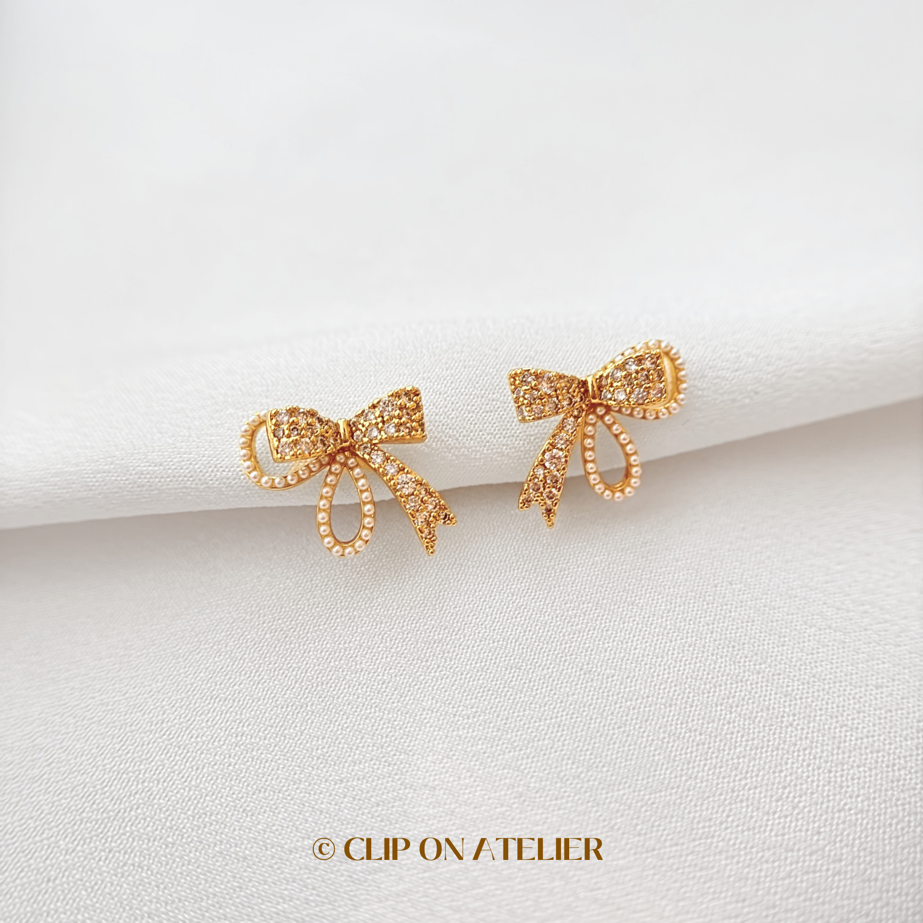 Dainty Sparkling Bow Tie Clip On Earrings
