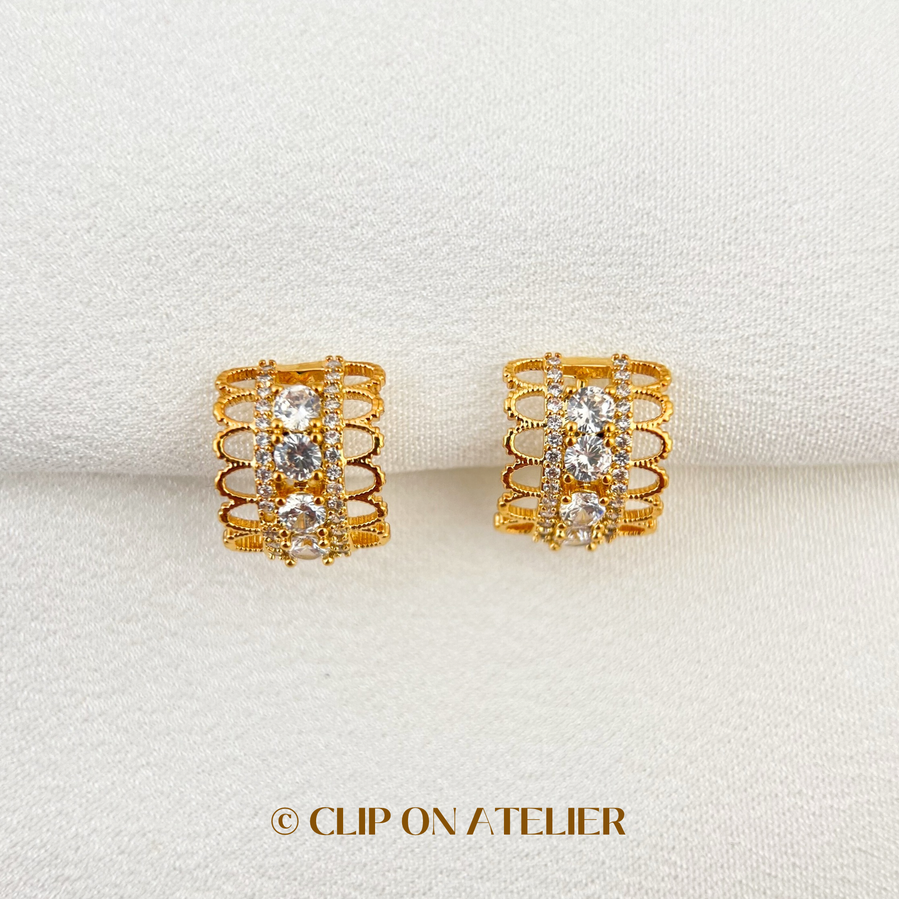 Gold / Silver Lace CZ Diamond Half Hoop Clip On Earrings