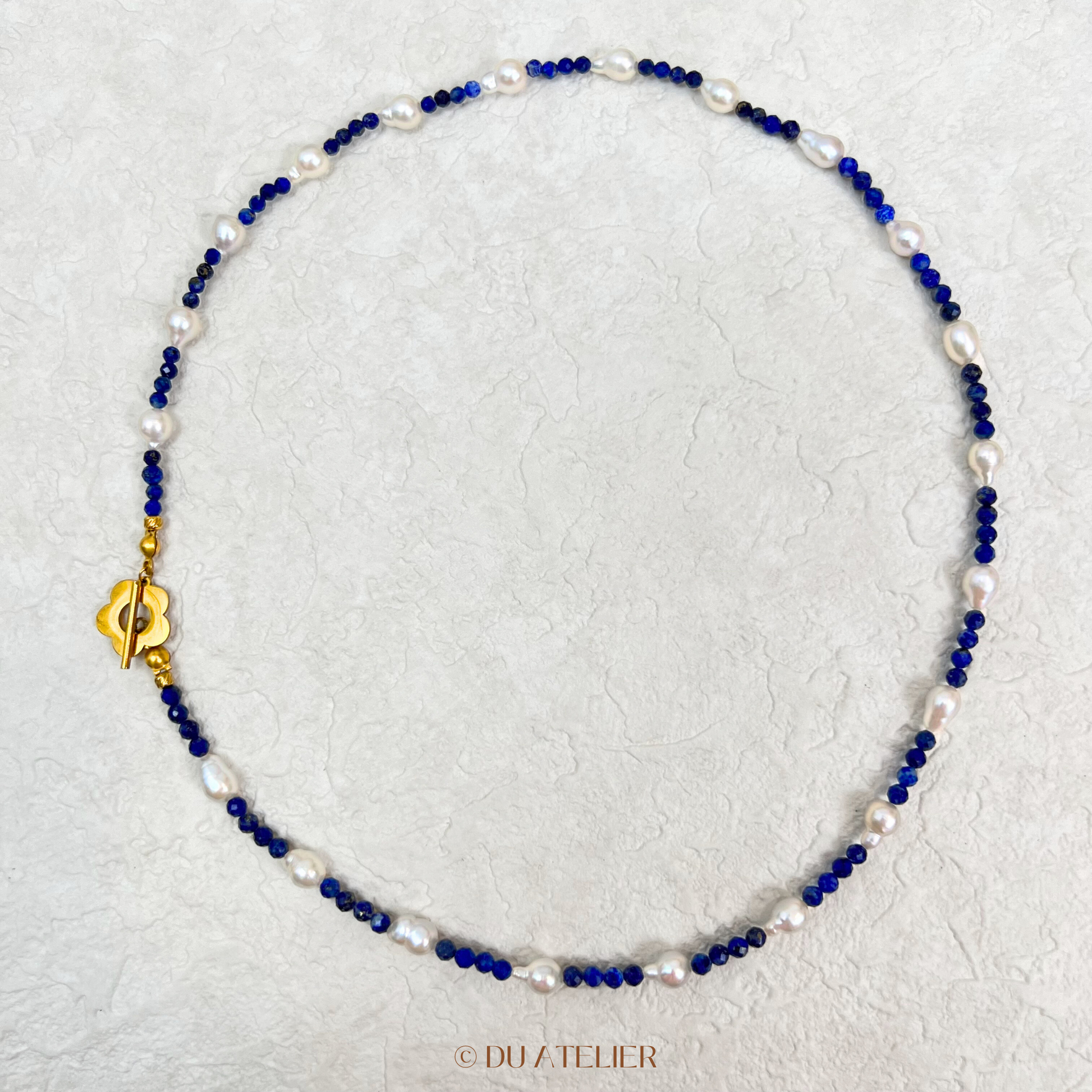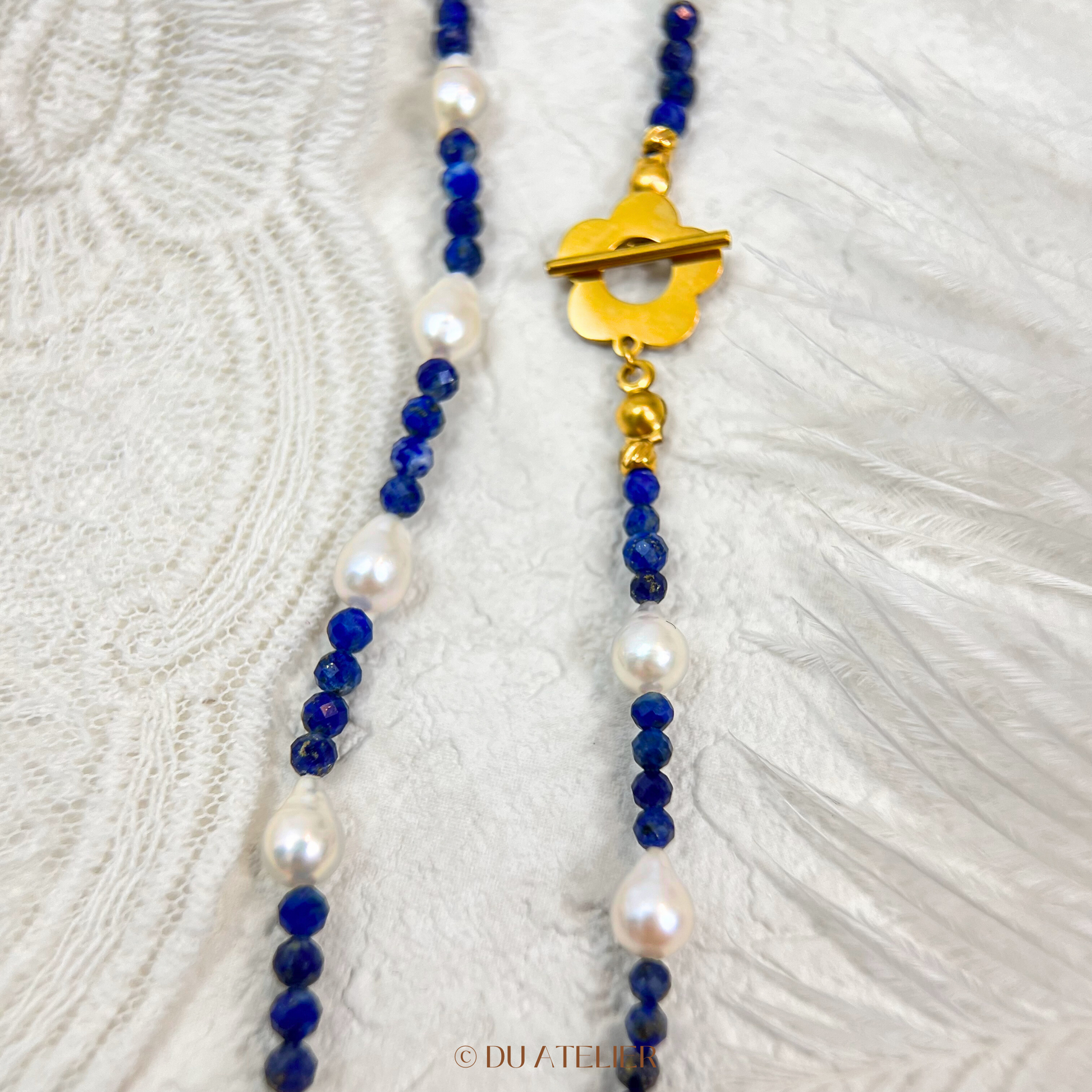 Natural Baroque Teardrop Shaped Pearl with Lapis Lazuli Necklace