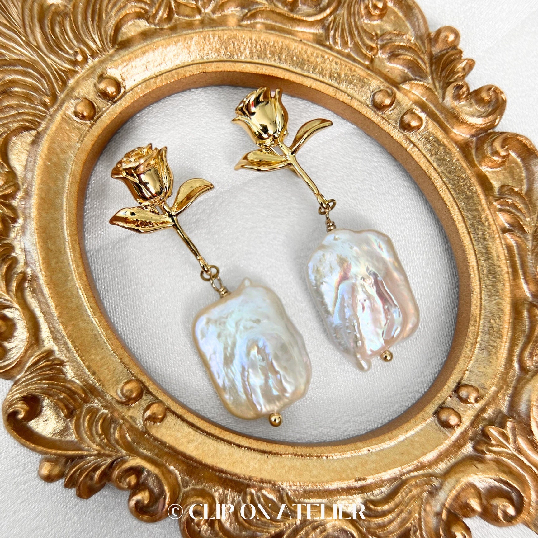 * Material: Gold-plated brass, Freshwater Baroque Pearls
