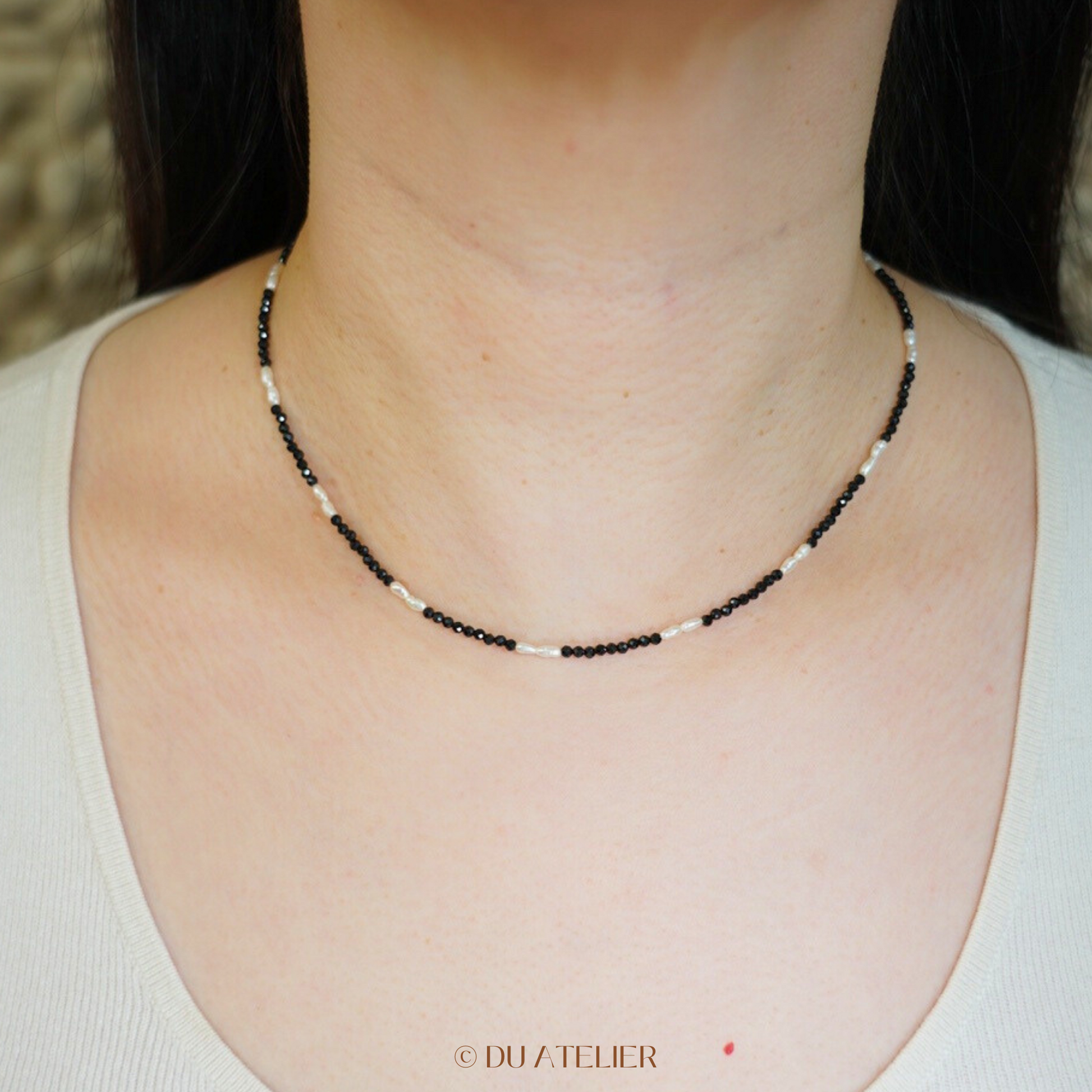♥ Material: 14k gold plated stainless steel; 2-3 mm natural Black Spinel; Natural Keshi Pearl