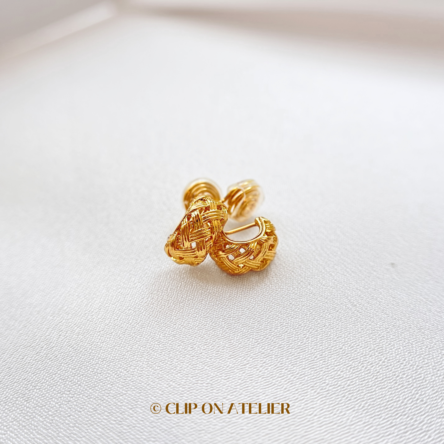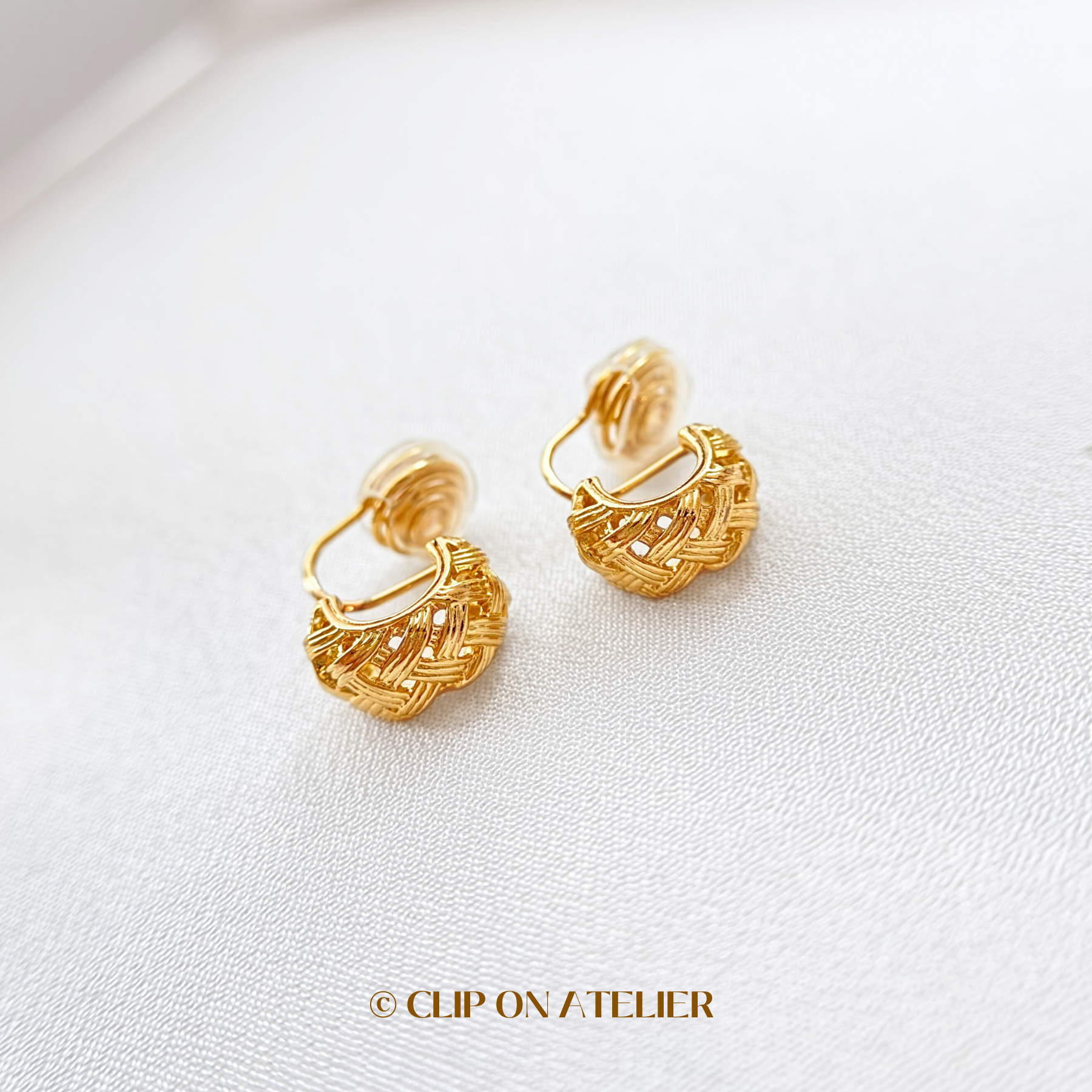 Woven Gold C-Shaped Hoop Clip On Earrings